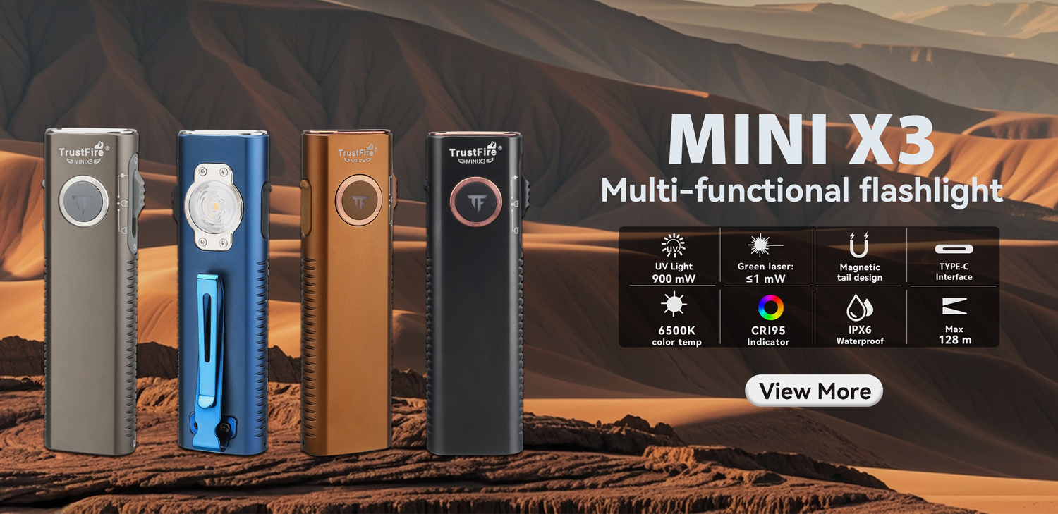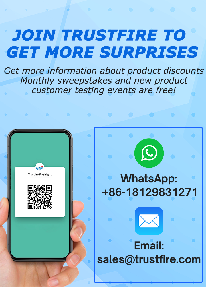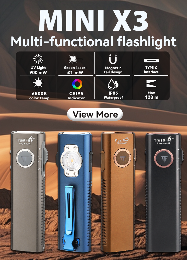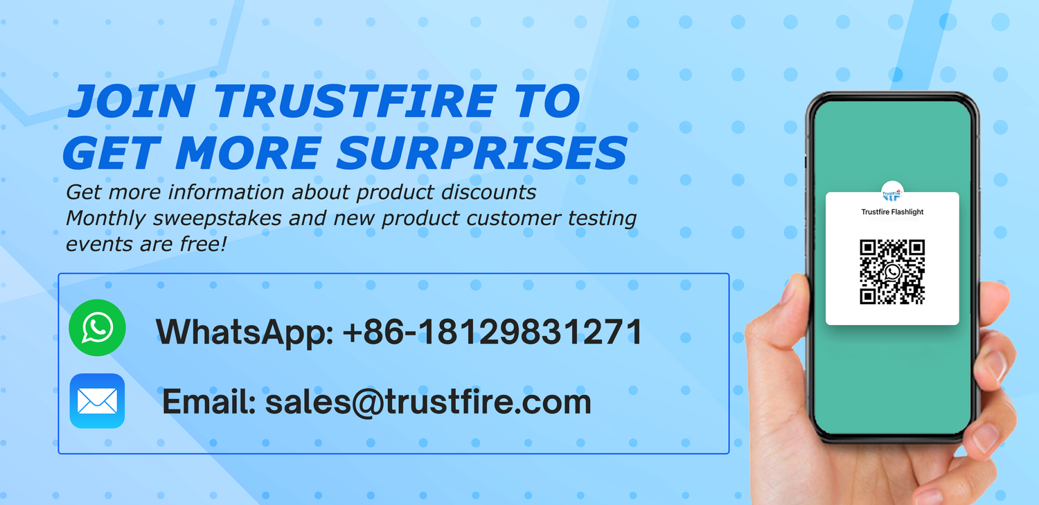 TrustFire, light up the darkness, shine! Its exquisite craftsmanship creates unparalleled brightness and stability. It is light and portable, but contains huge energy, and has a long battery life, so you don't have to worry about running out of power. Whether it is deep mountain exploration, outdoor activities, camping, hiking, emergency and Hunting applications, or looking for items at night when the power is out, it is your most reliable partner. Let the darkness have nowhere to hide, bringing you unlimited sense of security.