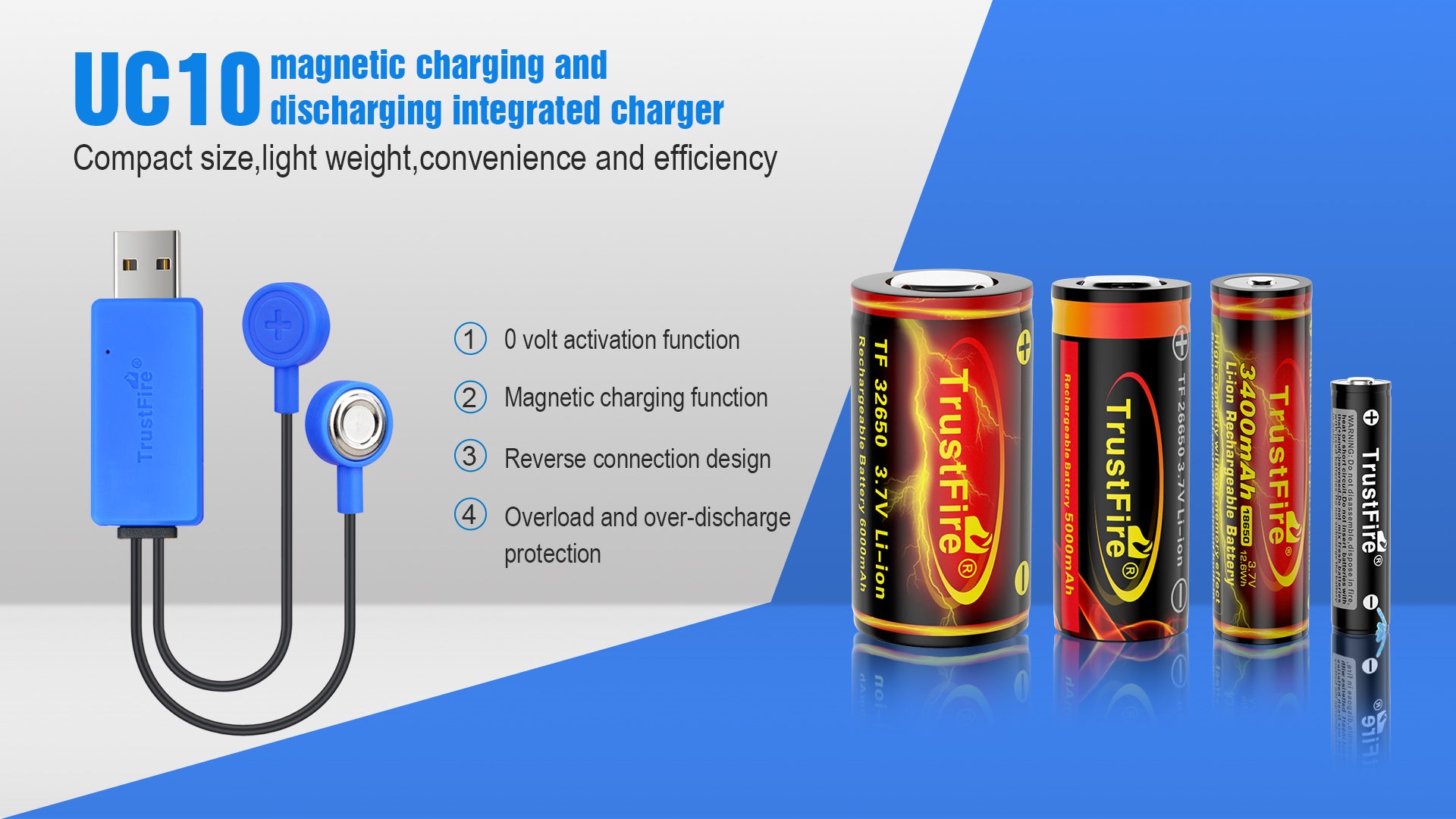 TrustFire Magnetic Charge and Discharge Charger Universal Charger for rechargeable lithium ion batteries 32650 14500 16340 26650 18650