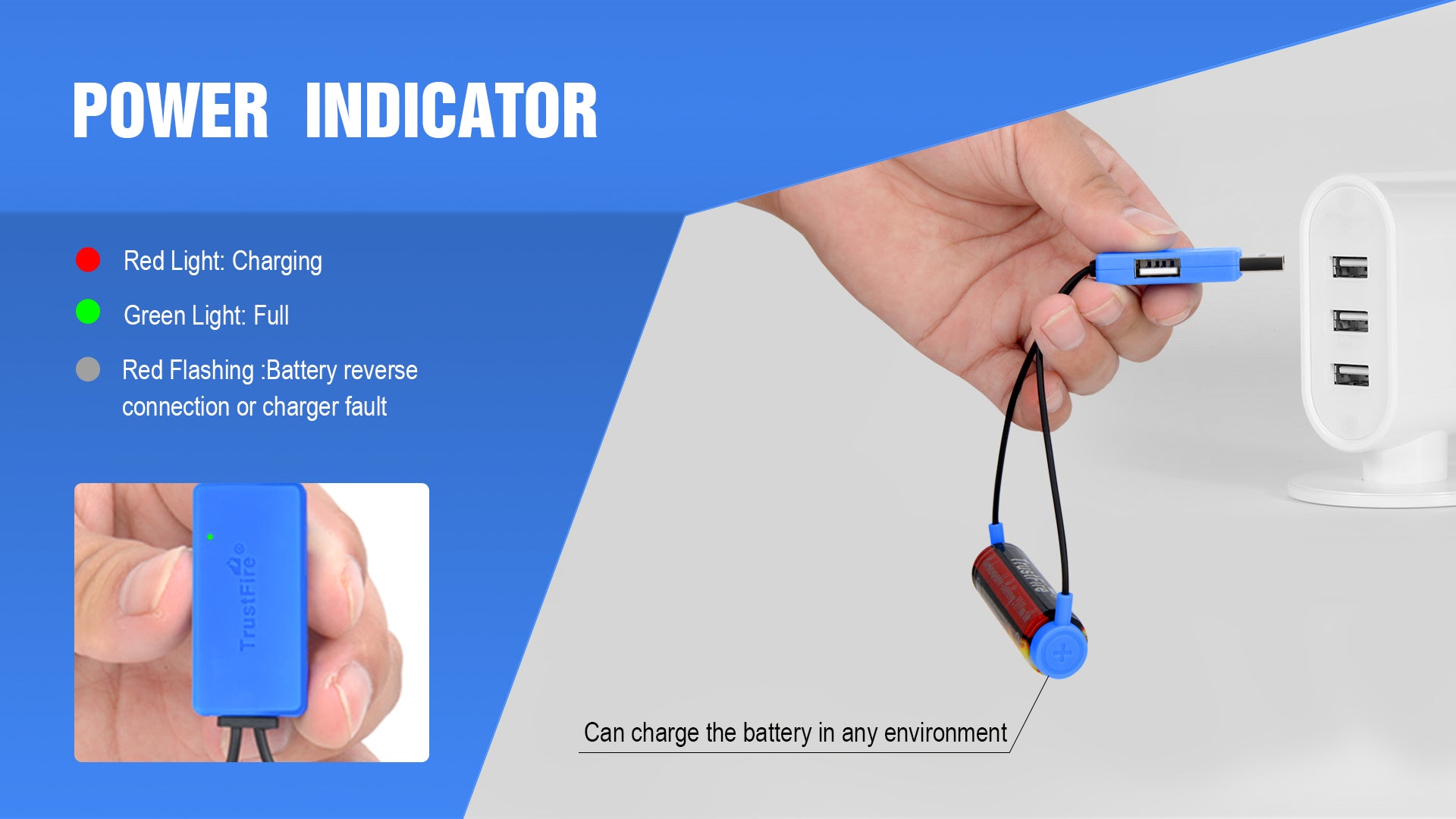 • Charging process-Can charge the battery in any environment